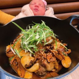 The food was really good and portions reasonable. The spicy cucumber appetizer is spicy so be careful. The kimchi was really good and big enough to share. The star plate for me was the garlic chicken ramen. The chicken is favorable; mixed in the poached egg this gave the hot soup a silky texture. The best dish I have had - try it! I was grateful we were accommodated us without reservation. But the service could have been better, the waiter seemed to be super busy the he "forgot" us. Took our order longer than it should have. The ambiance was busy and loud as expected in a busy place. But great food overall.